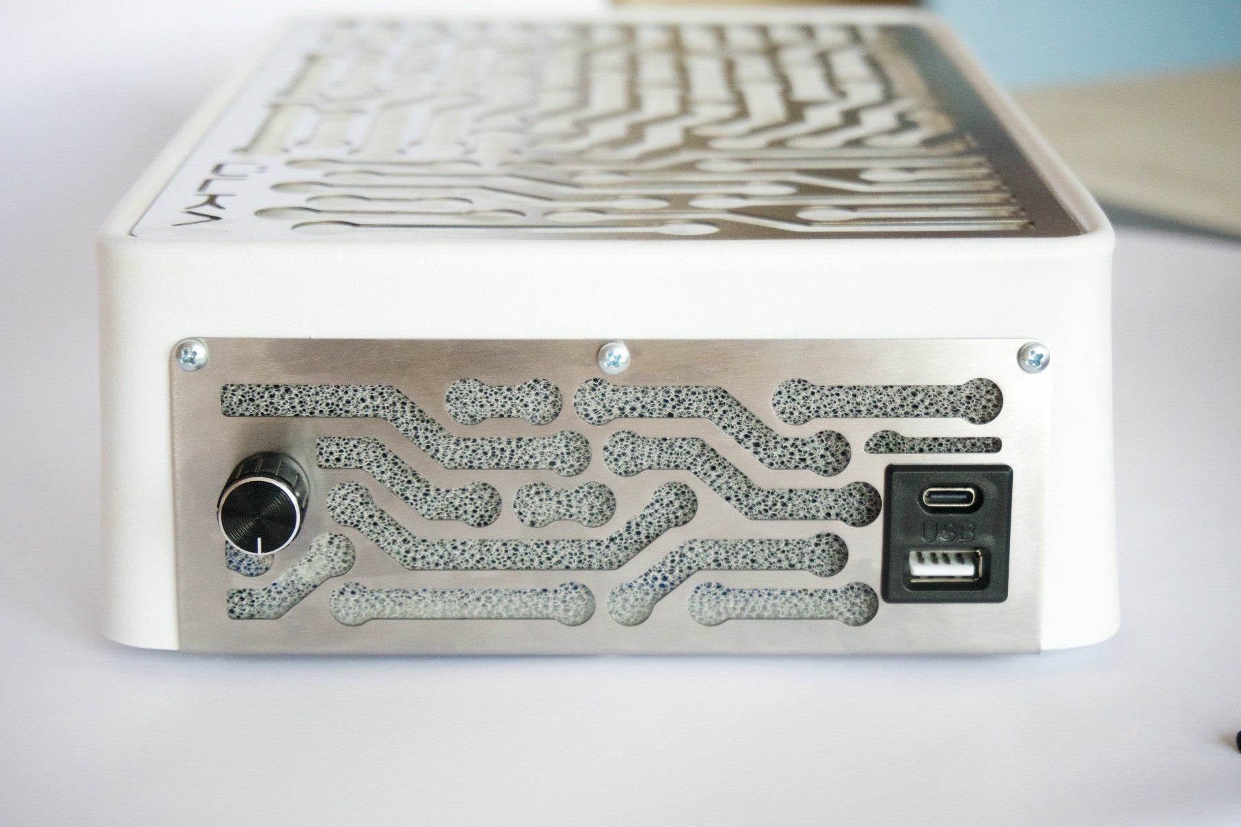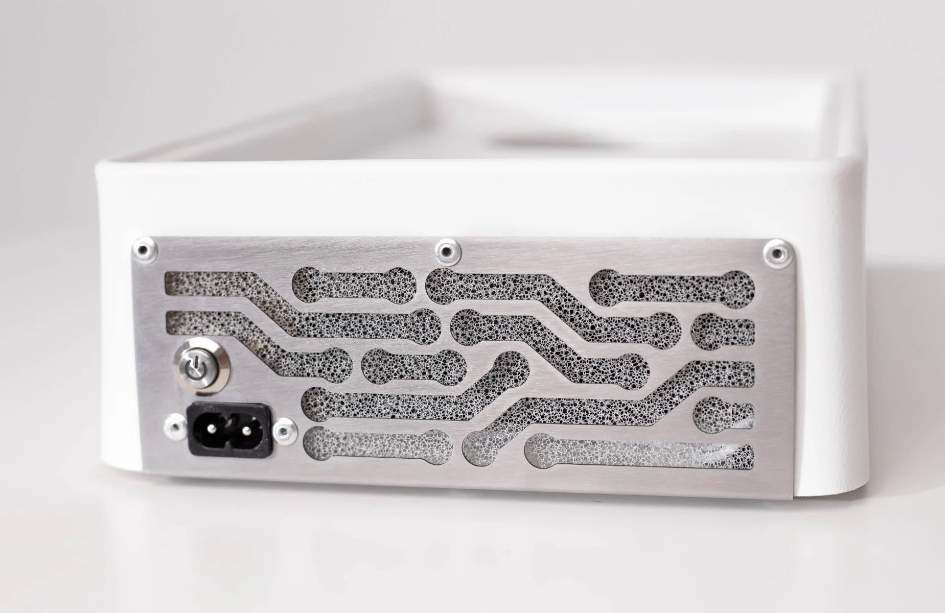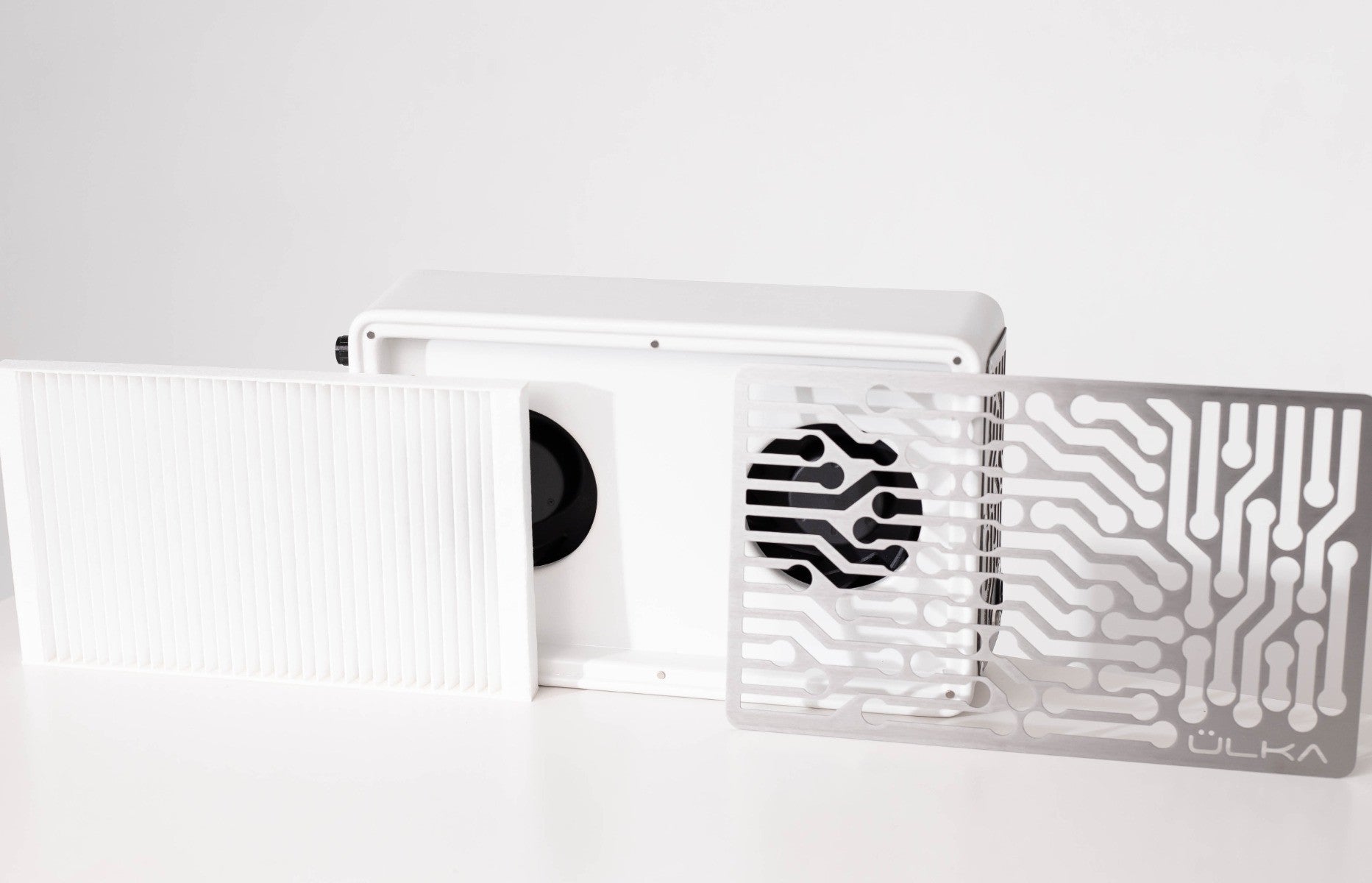 Ülka Nano Nail Dust White: 2 superkrachtige ventilatoren om al het stof van het werkgebied te absorberen en de longen van de nagelstyliste te sparen.